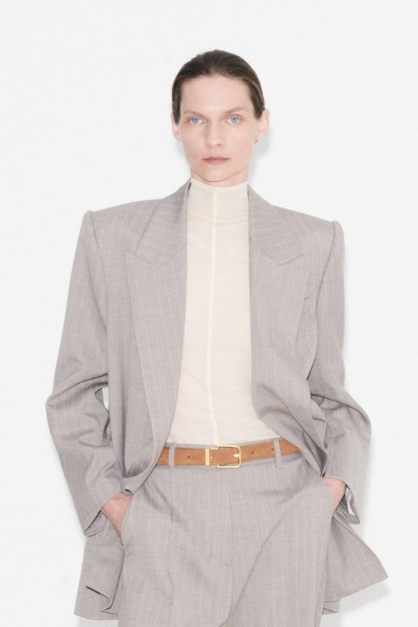 Atelier Notes: Designed in a soft mottled cream tone with subtle tonal pinstitch detailing down the front for elegant structure.