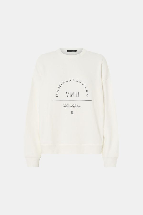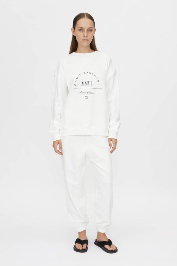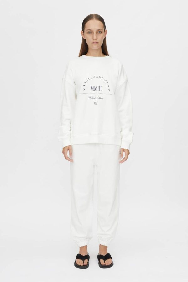 CAMILLA AND MARC Arcturus Graphic Crew Neck Sweater in Milk White.