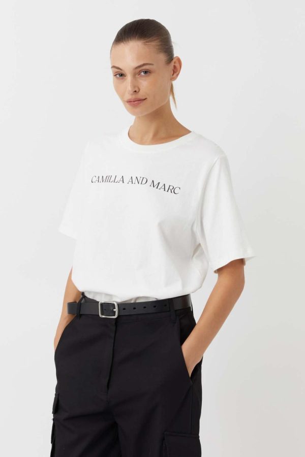 CAMILLA AND MARC Asher Cotton Logo Tee in White.