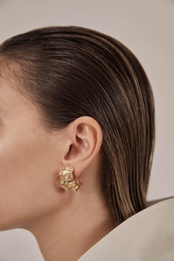 The Bastian Earrings, crafted from a brass base with luxurious 18k gold plating, embody the bold elegance of 1920s tank chains with their striking geometric design. Featuring bezel-set crystals that catch the light with refined brilliance, these earrings exude strength and sophistication. Secured with a prong and clip closure, they are the perfect statement piece to elevate any look with timeless luxury and modern edge.