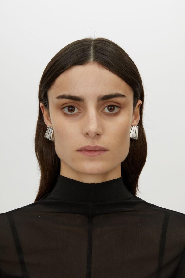 The Bowie Earrings, crafted from a brass base with Rhodium plating, embody the bold, architectural essence of Brutalist design with their striking angular line texture. Featuring a prong with clip closure for a secure and comfortable fit, these sculptural earrings catch the light beautifully with their precise detailing. Modern and effortlessly statement-making, they channel the raw sophistication of Norco House in Aberdeen, redefining contemporary jewellery with structural elegance.