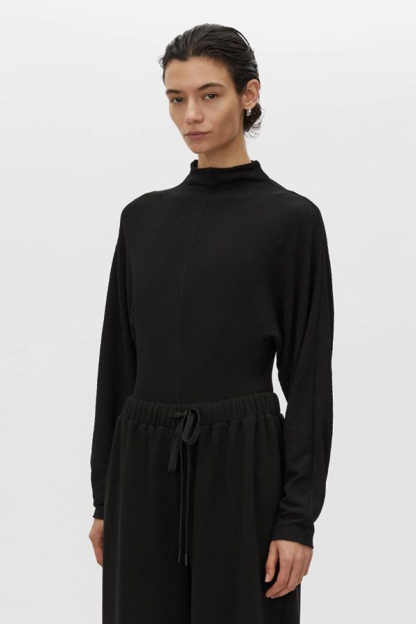 CAMILLA AND MARC Cali Textured Magyar Sleeve Bodysuit in Black.