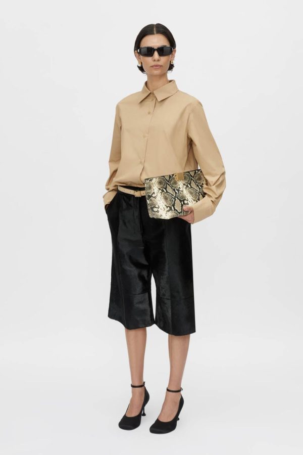 Atelier Notes: The Cumulus Shirt in a sophisticated beige features side slits for easy tucking and versatile styling options.
