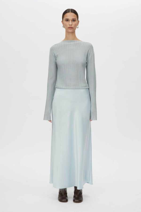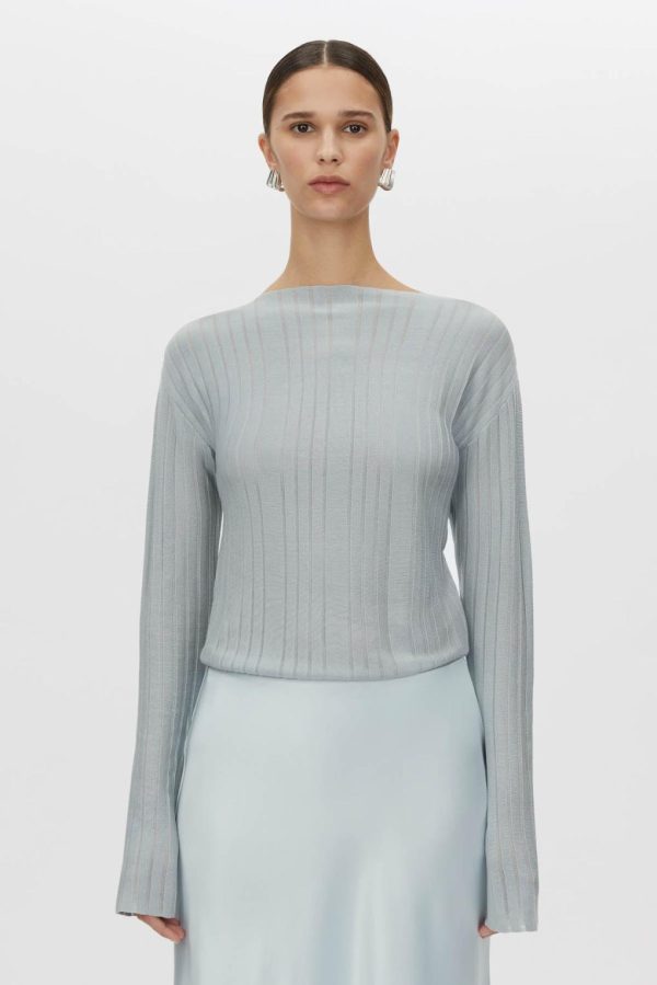 CAMILLA AND MARC Danielle Sheer Knit Top in Misty Blue.