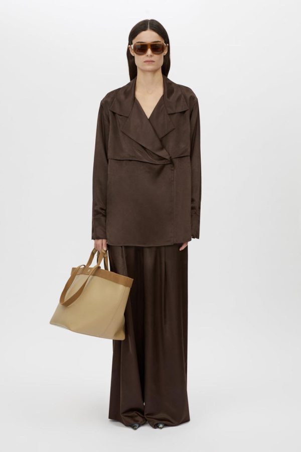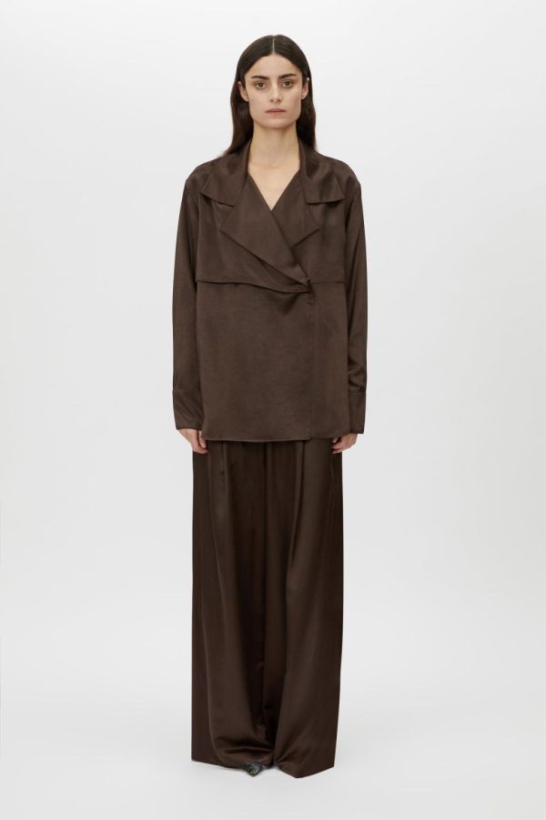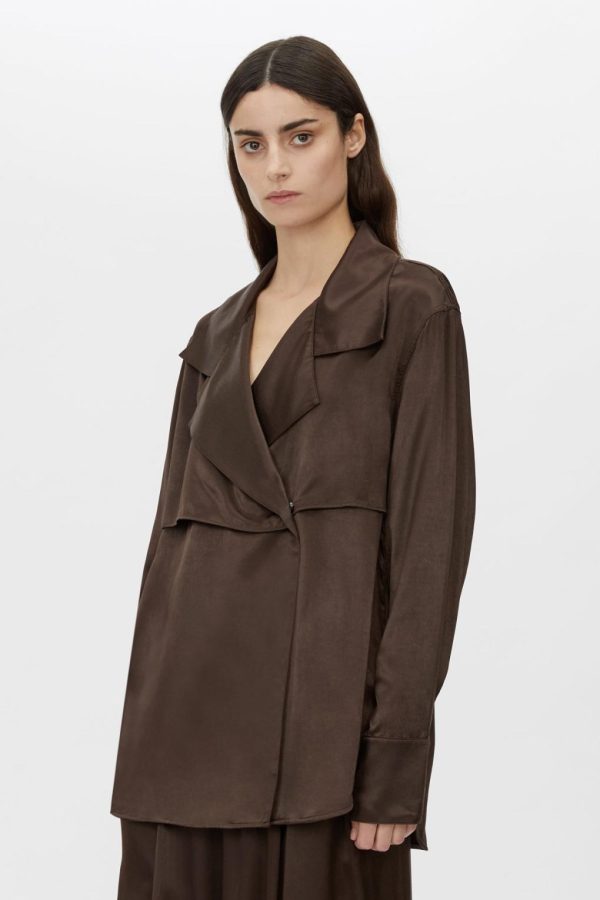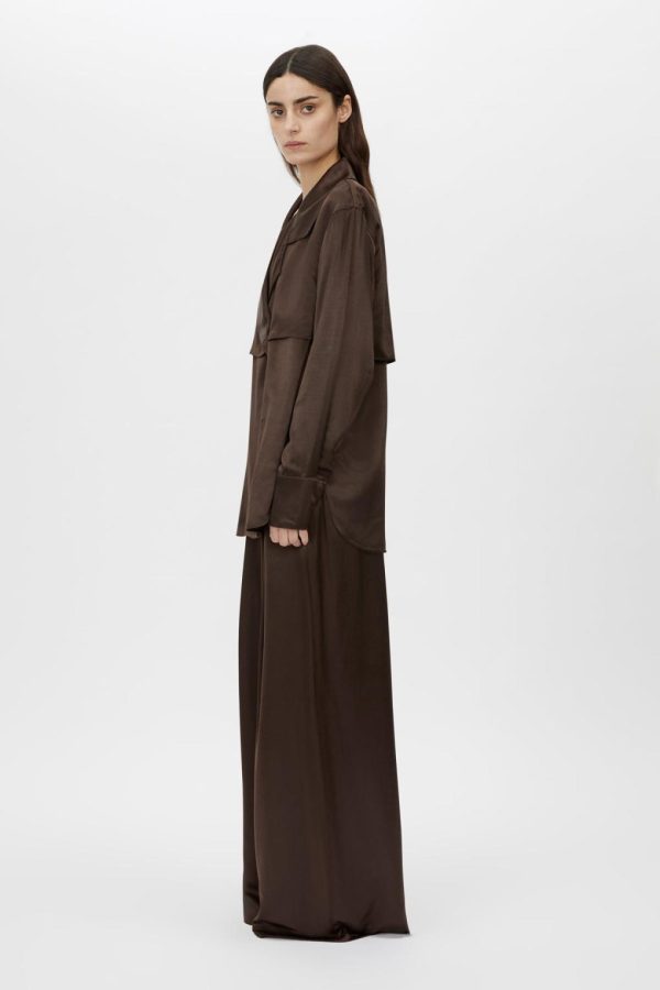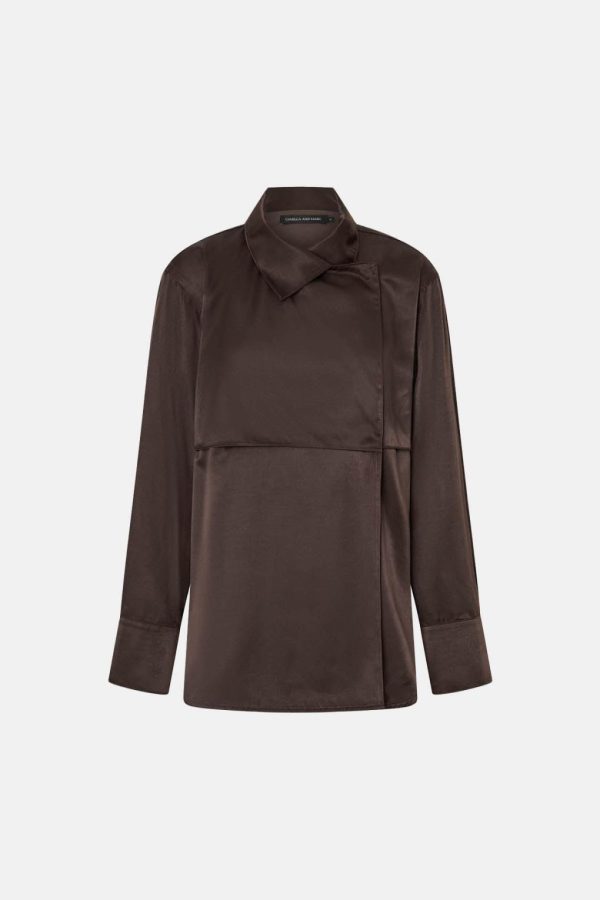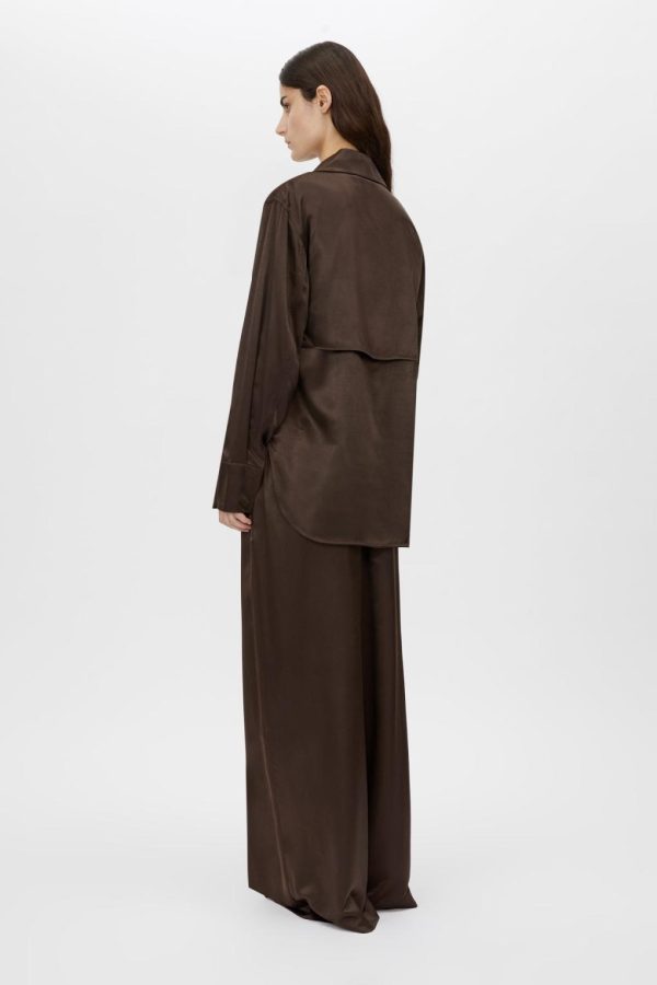CAMILLA AND MARC Harmonia Brushed Satin Shirt in Bitter Chocolate.