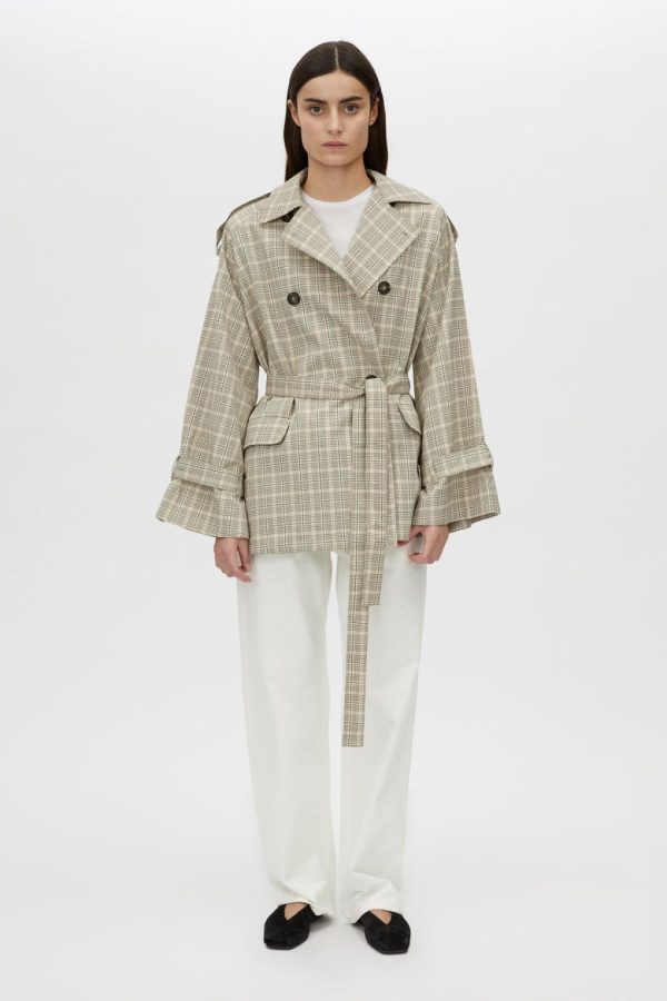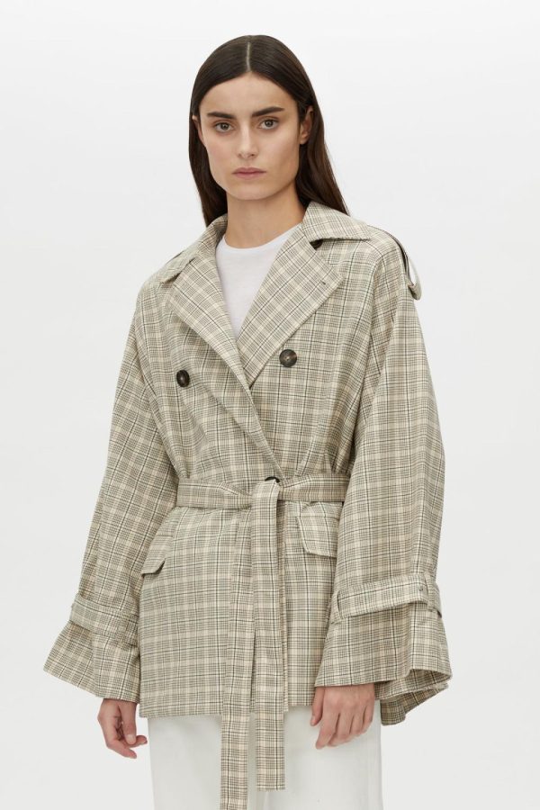 CAMILLA AND MARC Kinetic Tattersall Trench in Taupe Check.