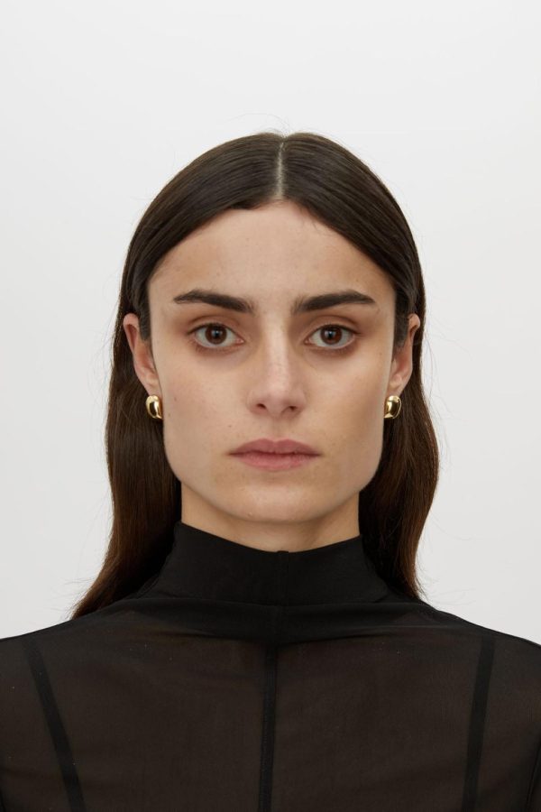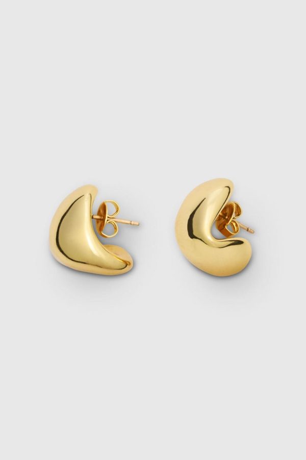 The Lamar Huggies are crafted with 18ct gold plating in a twisted organic silhouette. This piece features a prong butterfly clasp closure and a surgical steel prong.