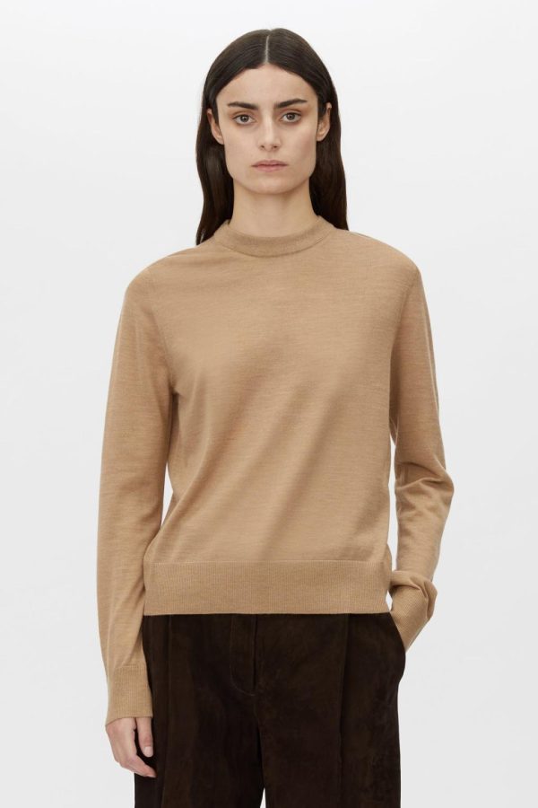 CAMILLA AND MARC Leona Classic Crew Neck Sweater in Tan Melange.