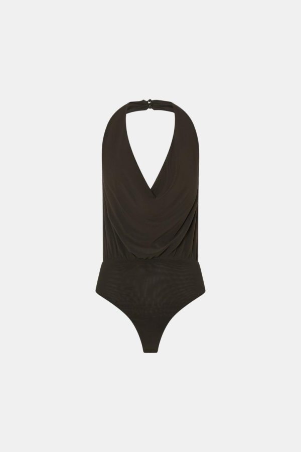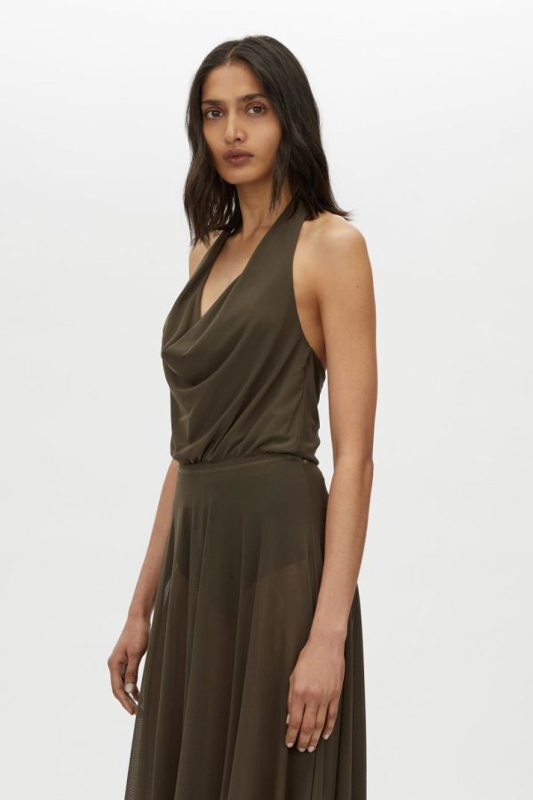 CAMILLA AND MARC Loom 2.0 Halter Bodysuit in Dark Khaki.