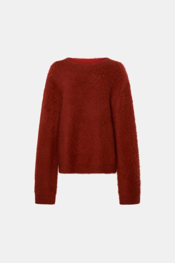CAMILLA AND MARC Meier Brushed Knit Sweater in Deep Red.
