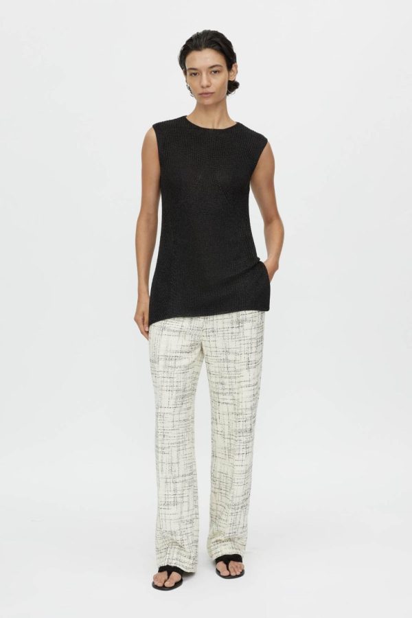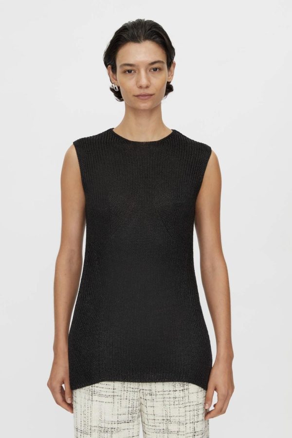 The Nomi Liquid Knit Top is crafted from a softly draped material in a sleeveless crew silhouette. This top features ribbed fashioning detail and a centre back split with button and loop closure.