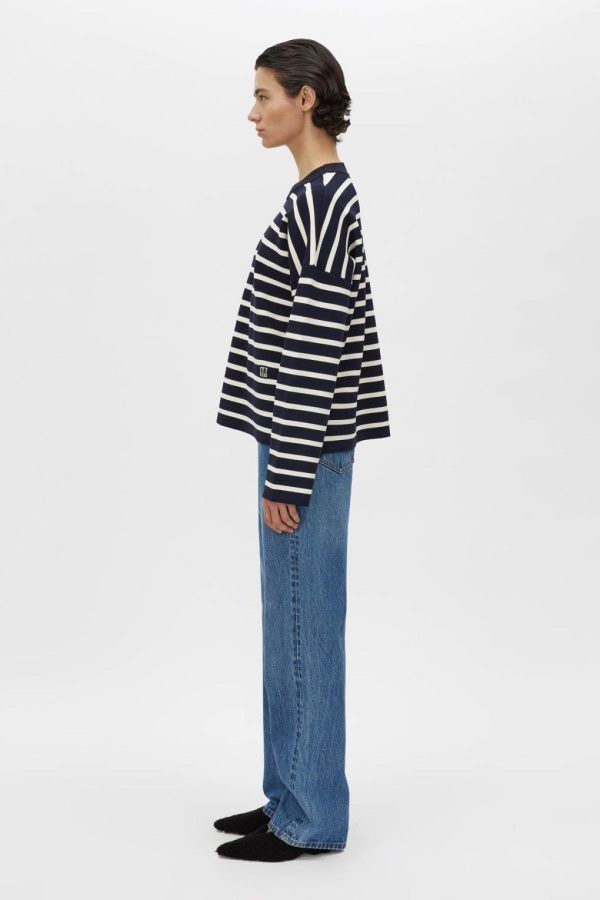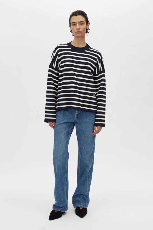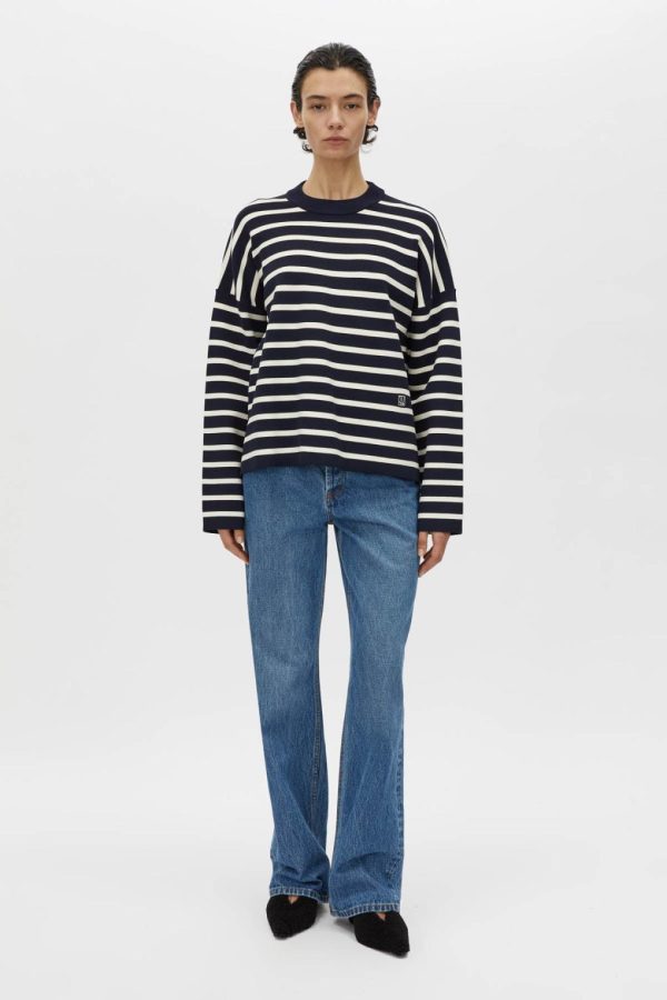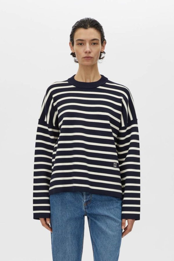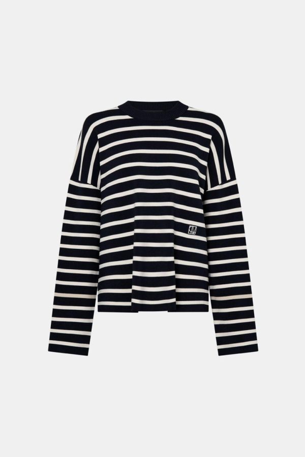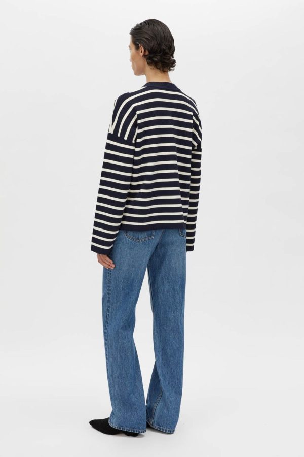 CAMILLA AND MARC Oscar Knit Sweater in Navy Stripe.