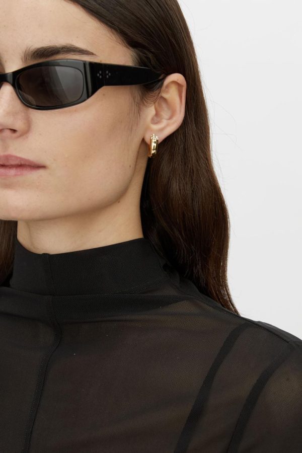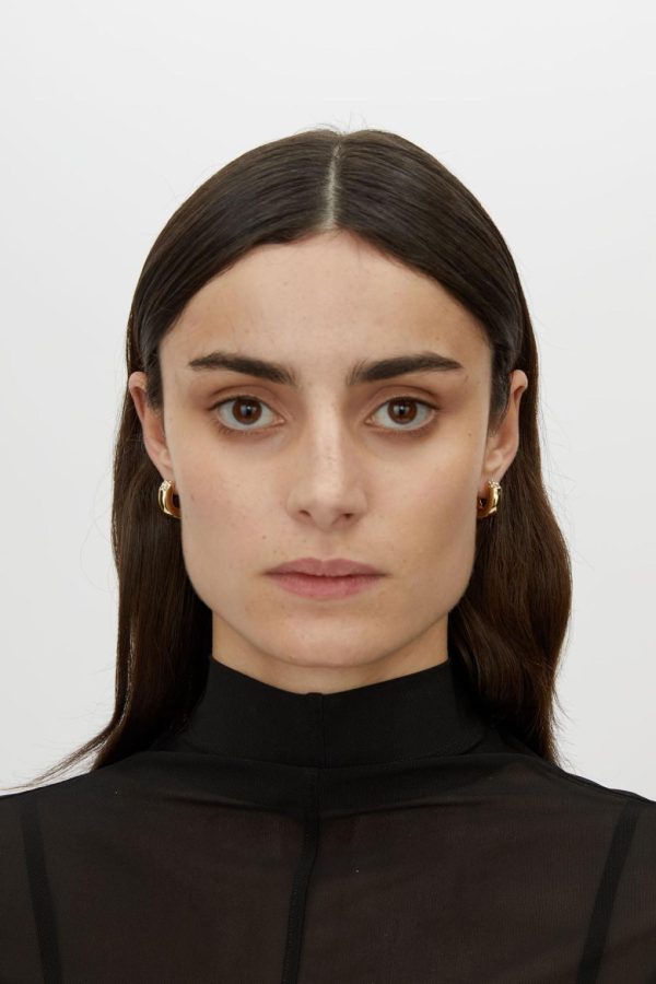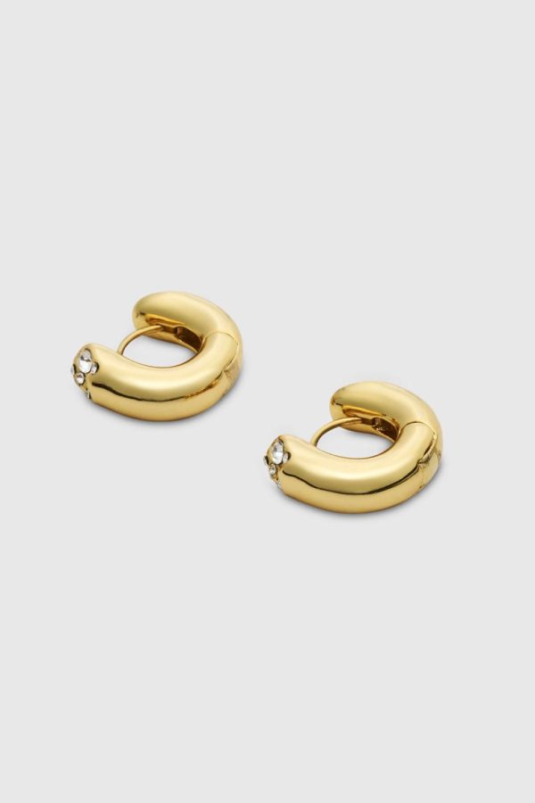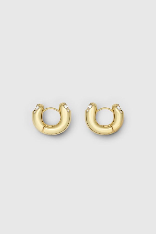 CAMILLA AND MARC Pablo Crystal Huggies in Gold.
