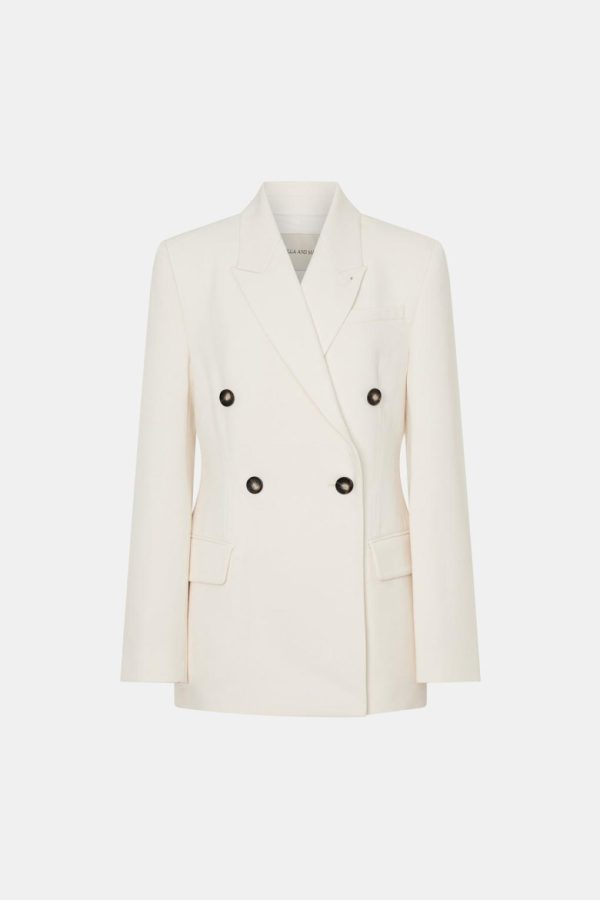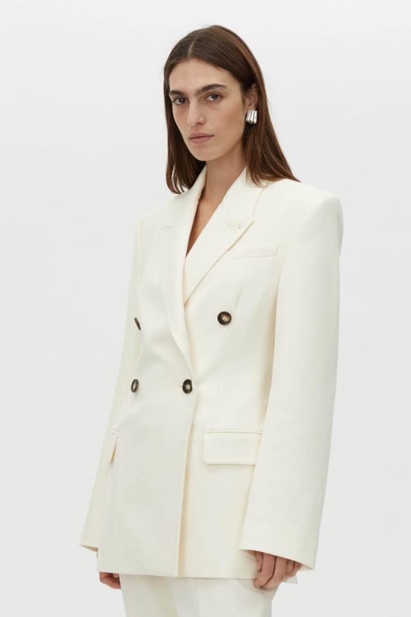 CAMILLA AND MARC Palisade Double-Breasted Blazer in Off White.
