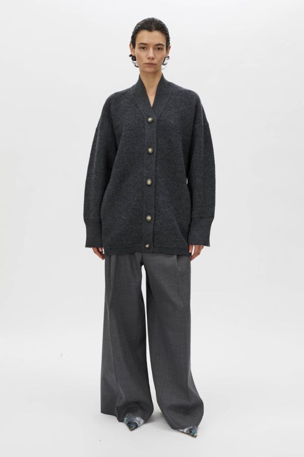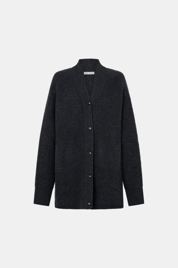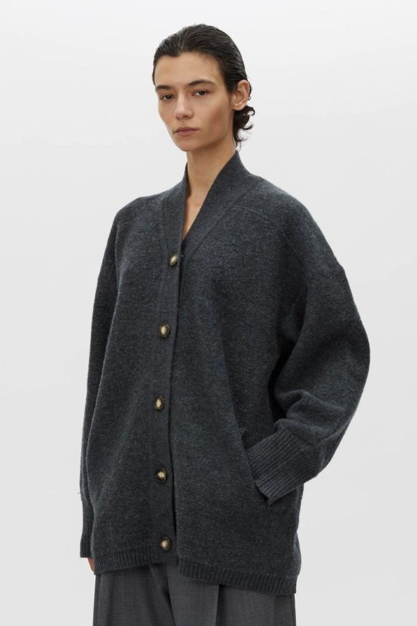 CAMILLA AND MARC Rohan Boiled Merino Knit Cardigan in Charcoal Melange.