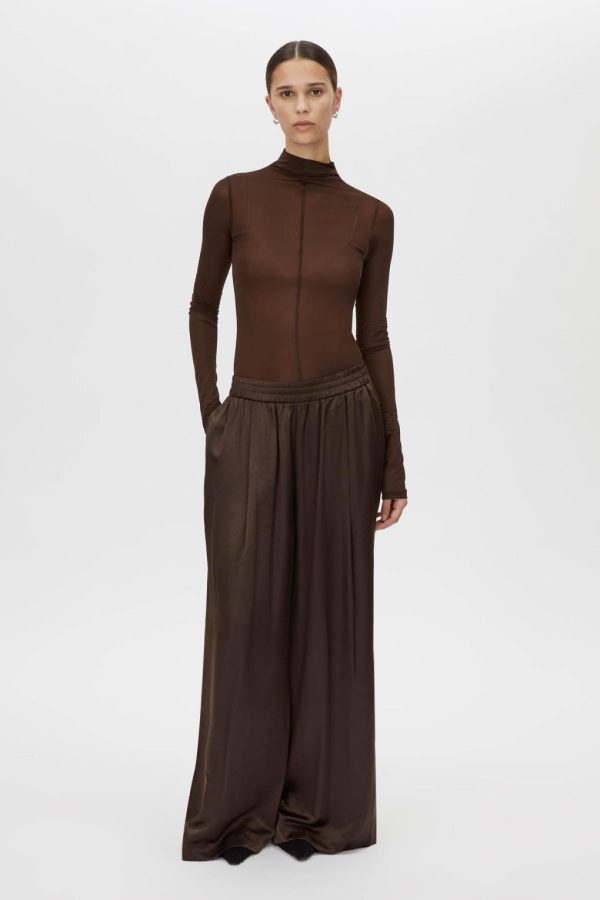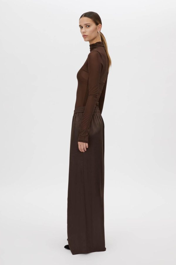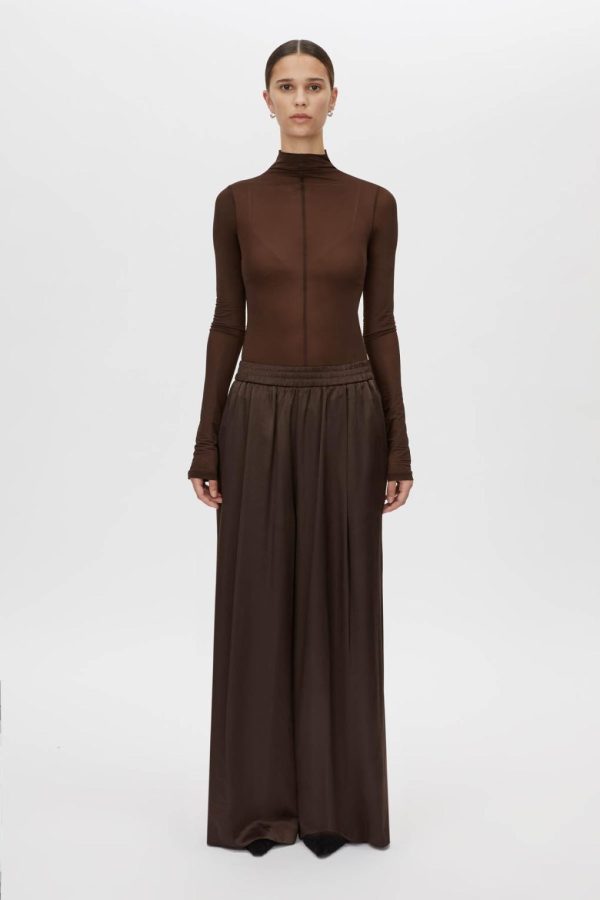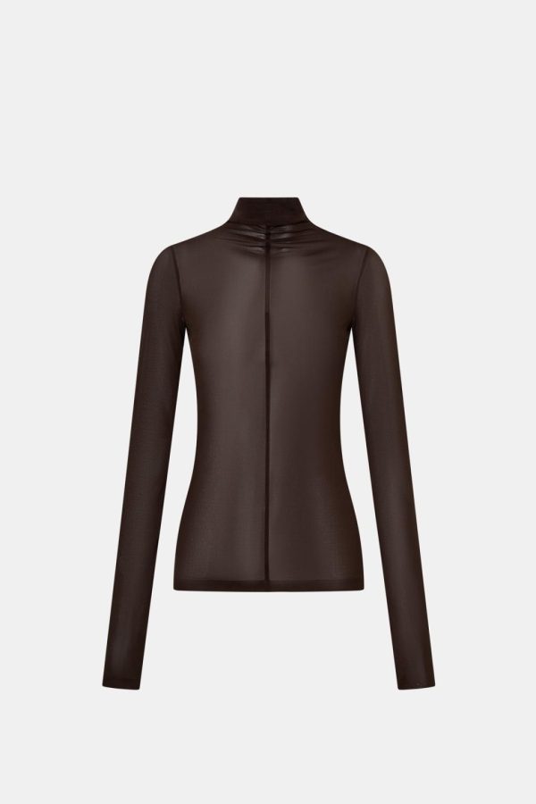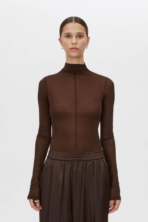 CAMILLA AND MARC Siphon Sheer Long Sleeve Top in Chocolate.