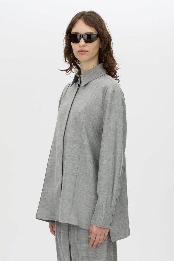 The Vector Shirt is crafted from a lightweight yet structured blend in a tailored, straight fit silhouette. This shirt features a mitered sleeve placket at the cuff and a blind hem with side splits.
