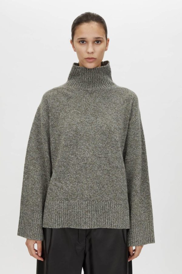 CAMILLA AND MARC Breccia Wool Knit Sweater in Khaki Twill.