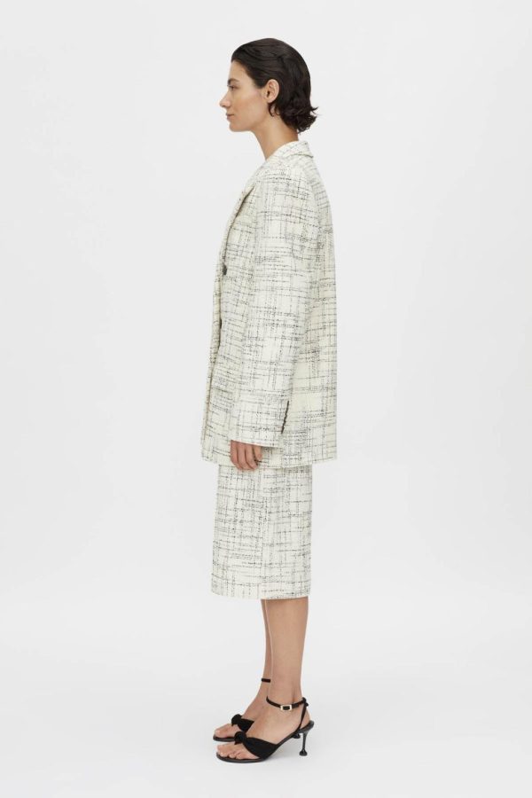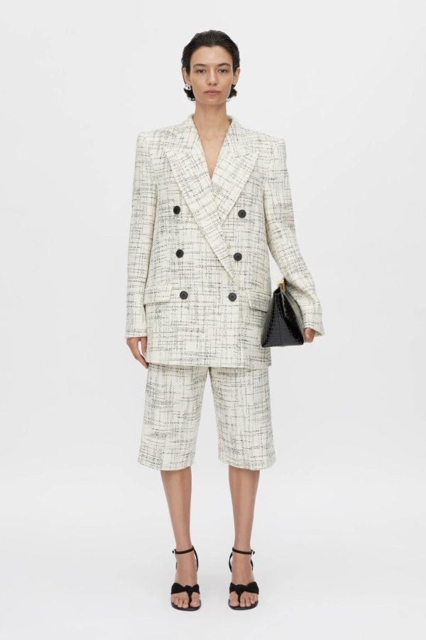 Atelier Notes: The Corvina collection stands out with its premium textured fabrication, featuring exclusive Italian tweed specially milled for CAMILLA AND MARC. The soft grid-like weave adds beautiful depth and dimension to the structured shape.